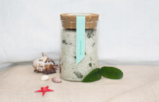 Bedtime Bliss is a lavender and seaweed formula for relaxation, while Joy Connects is a sage, lime and seaweed mix to help with clarity and vitality that helps to uplift your mood after a stressful day at work.