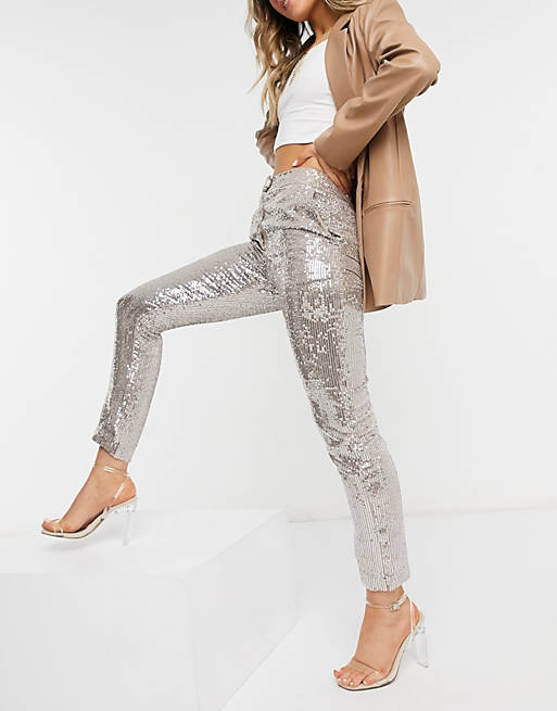 French Connection sequin trouser in rose gold