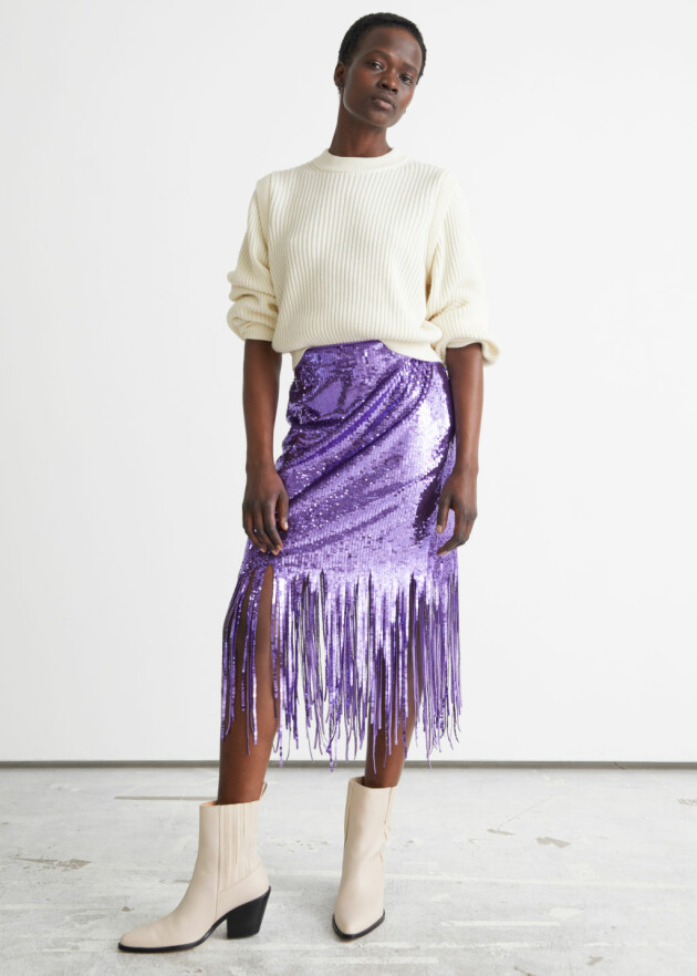 Looking for a major showstopper this Christmas? Look no further than & Other Stories sequin midi pencil skirt. Finished with a seriously on-trend fringe hem, the bright purple glitzy number is perfect to pair with boots and a sweater as well as a pair of heels and dressy top.