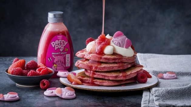 If you don’t fancy making Percy pancakes from scratch, you can always choose their ready prepared pink and fluffy, buttermilk Percy Pig™ Pancakes which are made with Percy Pig™ Dessert Sauce, apple juice and raspberry flavoured jelly pieces, for that iconic squidgy Percy texture and one-of-a-kind fruity flavour. Find them in your local M&S today.