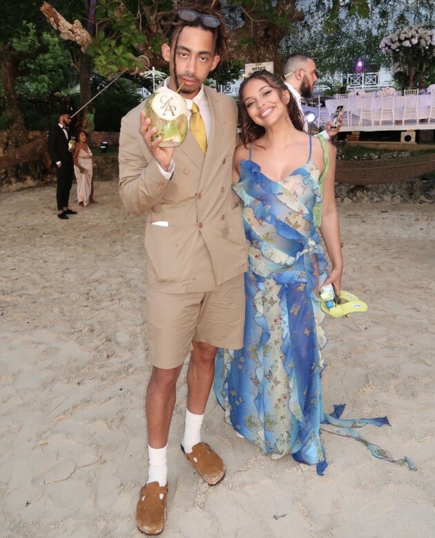 However, a few decor details from the reception could be spotted in the images, including a raised wedding table on the Jamaican beach, as well as a coconut drink with an “L A” symbol printed on it, in honour of the newlyweds.