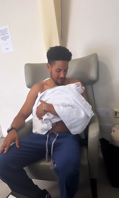 Professional basketball player Chanan commented under the post to say, “Thanks baby! And what a 1st farthers day, it was [praise hands emoji]. And JEEEESH almost forgot hot you looked pregnant”.