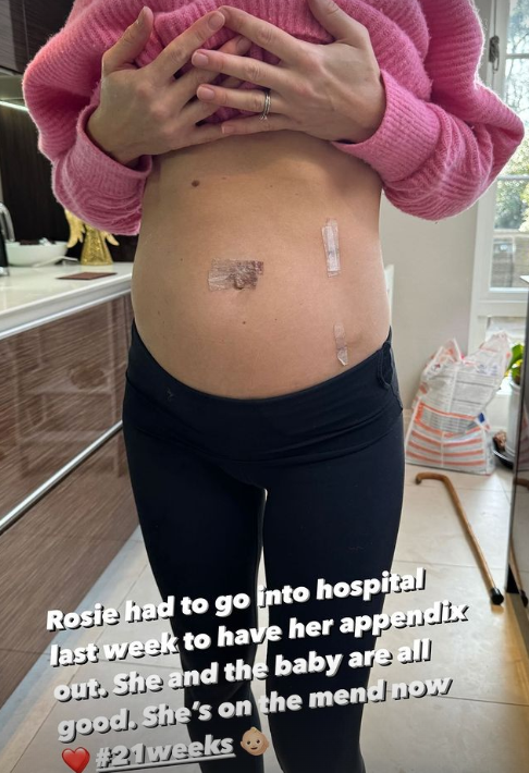 Now, less than two weeks on from unveiling their baby news, the couple have shared that Rosie has recently undergone surgery to remove her appendix.