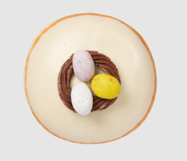 Happinest (€3.15): This egg-stra special doughnut is filled with an indulgent brownie batter, dipped in delicious white chocolate coating and topped with little chocolate eggs.