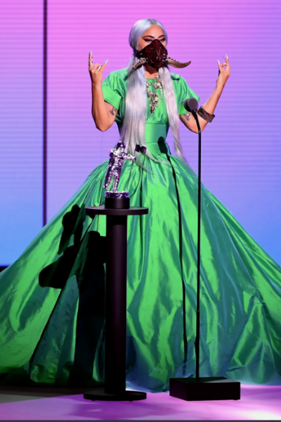 It’s obvious from last night’s looks that Covid-19 health and safety is really important to this pop star, as she stated in one of her acceptance speeches, “I might sound like a broken record, but wear a mask. It’s a sign of respect.” You tell them Gaga!