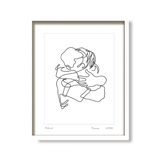 This powerful one line image captures the beauty of the shared moment. There is a strong sense of connection between the subjects created by line looping around them. The focus of this range is to capture the essence of the subject with the minimal use of line. The one line pieces are, as the name suggests, drawn with a single line, the pen or brush never leaving the paper, creating deceptively simple images. This is a limited edition print from an original work by Francis Leavey. Available to buy here.