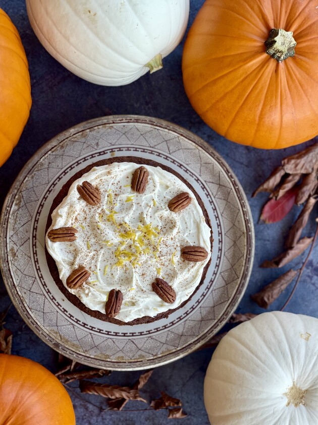 “This cake couldn't be simpler. Just tip all of the ingredients into a bowl and mix. The beauty of this is you don’t need pumpkin puree, just grate the pumpkin that’s left over from carving. You can also make this as a traybake. It is so tasty and easy for kids to help with too!” – Lilly Higgins