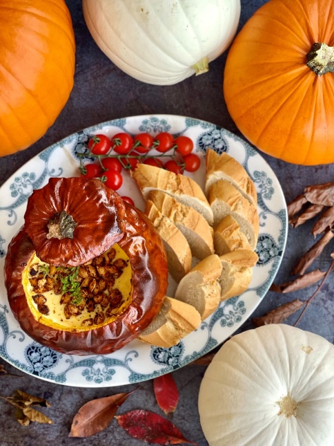 “This fondue is great fun. I would always recommend using smaller pumpkins as decorations around the house and the best part is you can eat them after! Pumpkins are so sweet and tasty once roasted, and make a perfect cauldron filled with melted cheese sauce. Keep the pumpkin seeds and roast them to add crunch and flavour. All you need is a freshly baked Lidl baguette for dipping into the creamy cheese. It is so good!” – Lilly Higgins