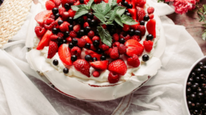 Dessert Time: Vanilla pavlova topped with mixed summer fruit