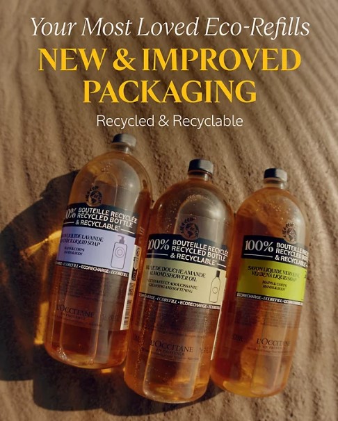 As part of the next step in their eco-conscious journey, L’OCCITANE is excited to announce the relaunch of three of their best-selling eco-refills now housed in a 100% recyclable bottle.*