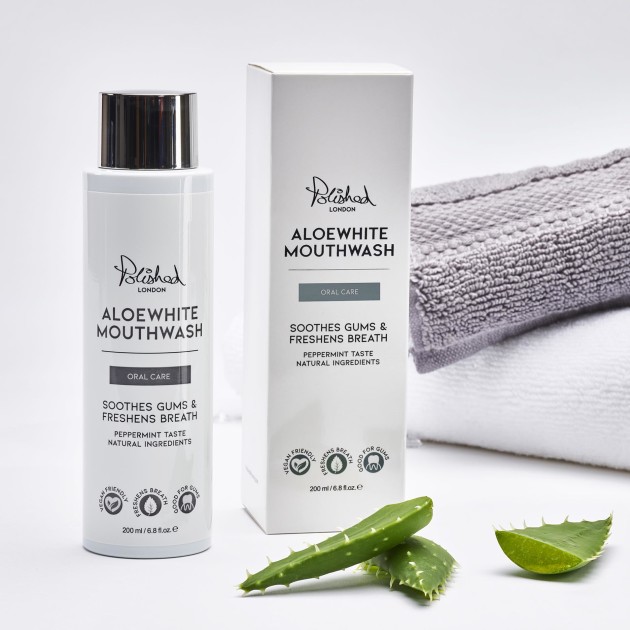 Formulated using the finest, naturally derived pure ingredients, the Polished London AloeWhite Mouthwash contains Aloe Vera, which is revered for its soothing, healing benefits, combined with natural peppermint oil, leaving your mouth feeling clean with a long-lasting minty fresh finish, all the while maintaining gum health.