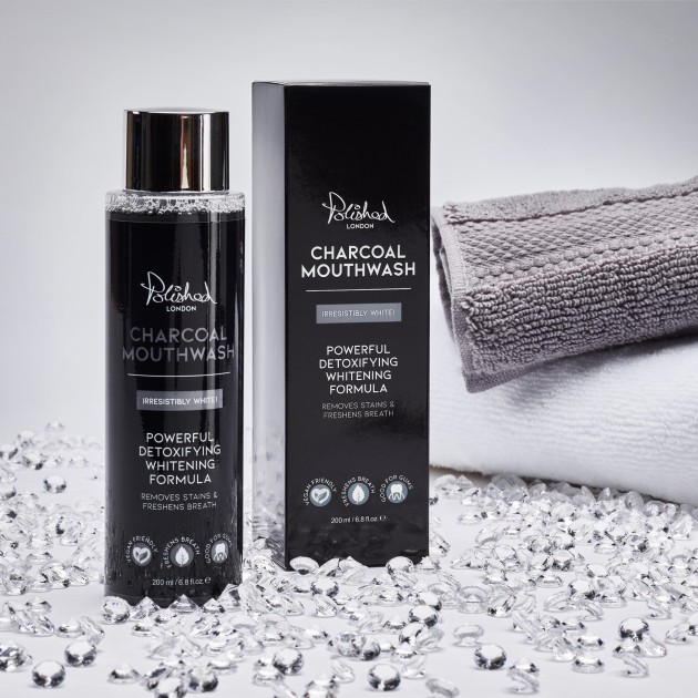 Polished London’s Activated Charcoal Mouthwash contains natural ingredients which work in tandem to create a detoxifying solution that helps to remove stains and bad breath, leaving your mouth fresh and gradually whitening your smile.