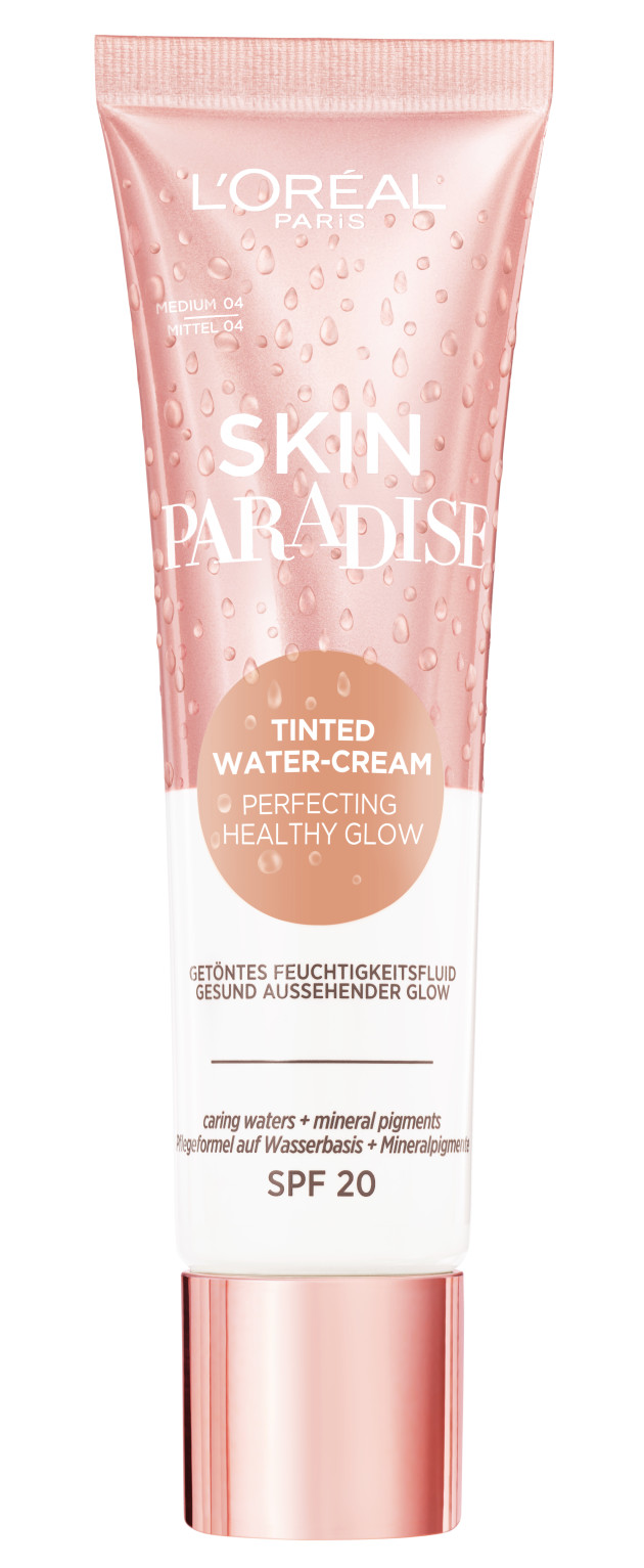 L’Oréal Paris Skin Paradise Tinted Water Cream available in 10 shades in supermarkets and independent pharmacies from late June 2021, €14.95/£10.99.