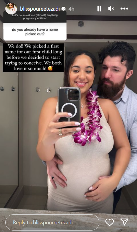 Another fan then asked Bliss if she and Zack had any names picked out for their little one and she revealed, “We do!! We picked a first name for our first child long before we decided to start trying to conceive. We both love it so much!”.