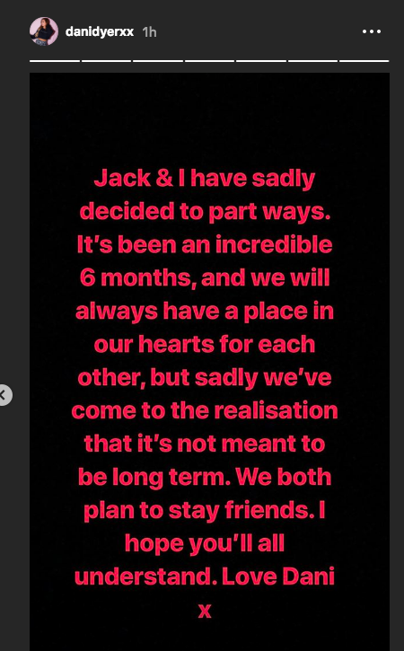 Dani has since removed her Instagram story post, stating that she and Jack are over – LIKE WHY?