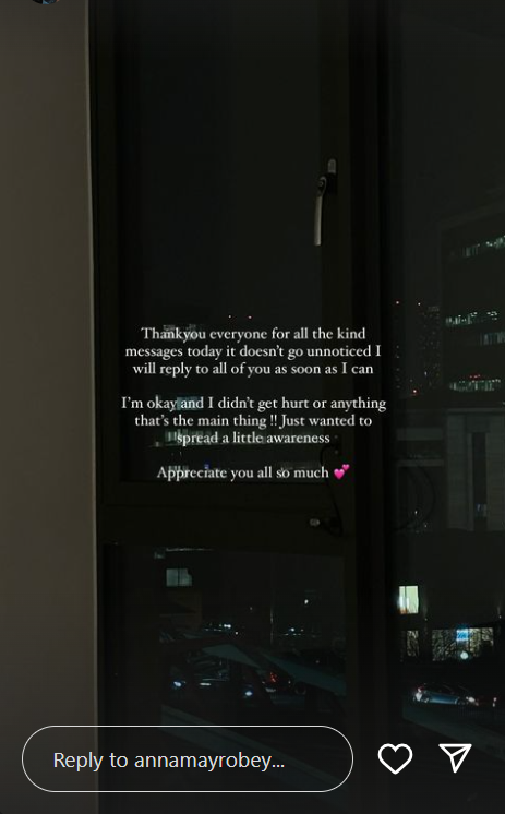 Anna-May Robey has reached out to her fans after revealing that she was mugged earlier this week.