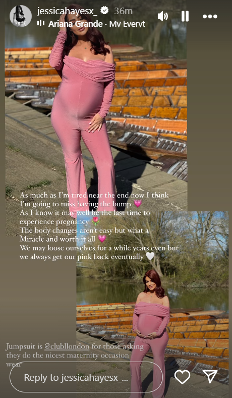 Taking to her Instagram Stories, Jessica unveiled photos of her wearing a pink jumpsuit with her blossoming baby bump on display to her 350K followers.