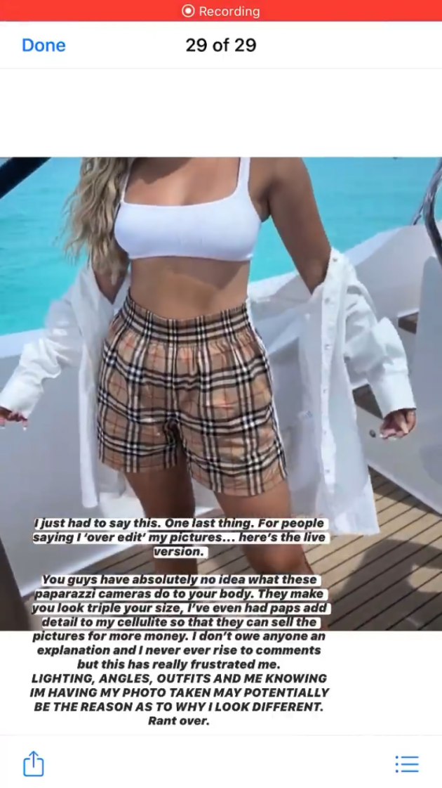 “You guys have absolutely no idea what these paparazzi cameras do to your body. They make you look triple your size, I’ve even had paps add detail to my cellulite so that they can sell the pictures for more money.”
