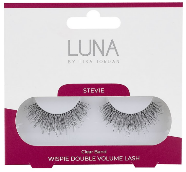 If you are after a little oomph and extra drama, look no further than STEVIE our new false lash with wispy double volume lashes and a clear band. This set takes drama and indulgence to a new level with its expertly crafted 3D silk effect strands and double layering. Lusciously long and fabulously full, these lashes have a feather-light feel and are a must-have for creating an elongated and eye-opening look! Make a statement, with Stevie
