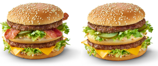 Help yourself to two 100% beef patties, a slice of cheese, lettuce, onion, pickles, and the delicious Big Mac sauce in a sesame topped bun. The same ingredients as a Big Mac, just bigger and better so not only is it satisfying in taste, but also in size! – choose to have yours with or without bacon.