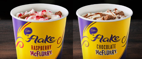 And last but not least, you can get your hands on the fan fave Cadbury Flake McFlurries as they return to the menu. The Flake Chocolate McFlurry is made from dairy ice cream swirled with chunks of Flake chocolate pieces and chocolatey sauce. The Flake Raspberry McFlurry is the same only drizzled in a sweet, fruity sauce instead, with both also available as a mini size.
