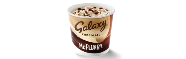The ultimate chocolatey dessert made from soft dairy ice cream, swirled with Galaxy chocolate pieces and either a chocolate or smooth caramel sauce. Both available as a Mini McFlurry.