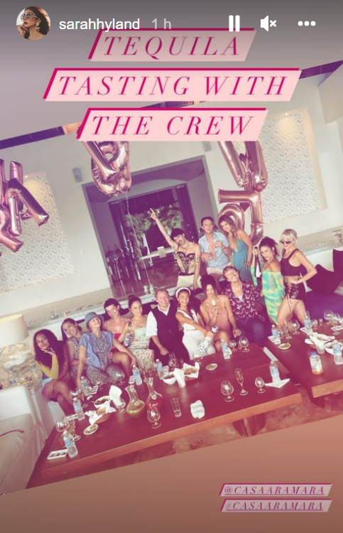 The 31-year-old shared a snap of her and her friends on a yacht in Mexico to her Instagram for her 9.5M followers to see. Sarah looked stunning in a white bathing suit that read ‘Bride’, along with a glitzy cover-up and pink heart-shaped sunglasses.