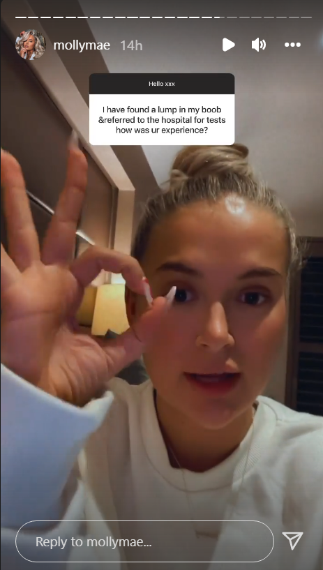 During an Instagram Q&A on Monday evening, the 21-year-old influencer responded to a question which asked Molly about her experience when she found a lump on her breast.
