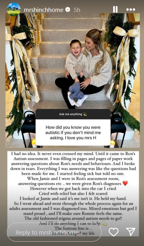 Hinch replied by sharing a snap of her and Ron laughing together and admitting, “I had no idea. It never even crossed my mind. Until it came to Ron’s Autism assessment”.