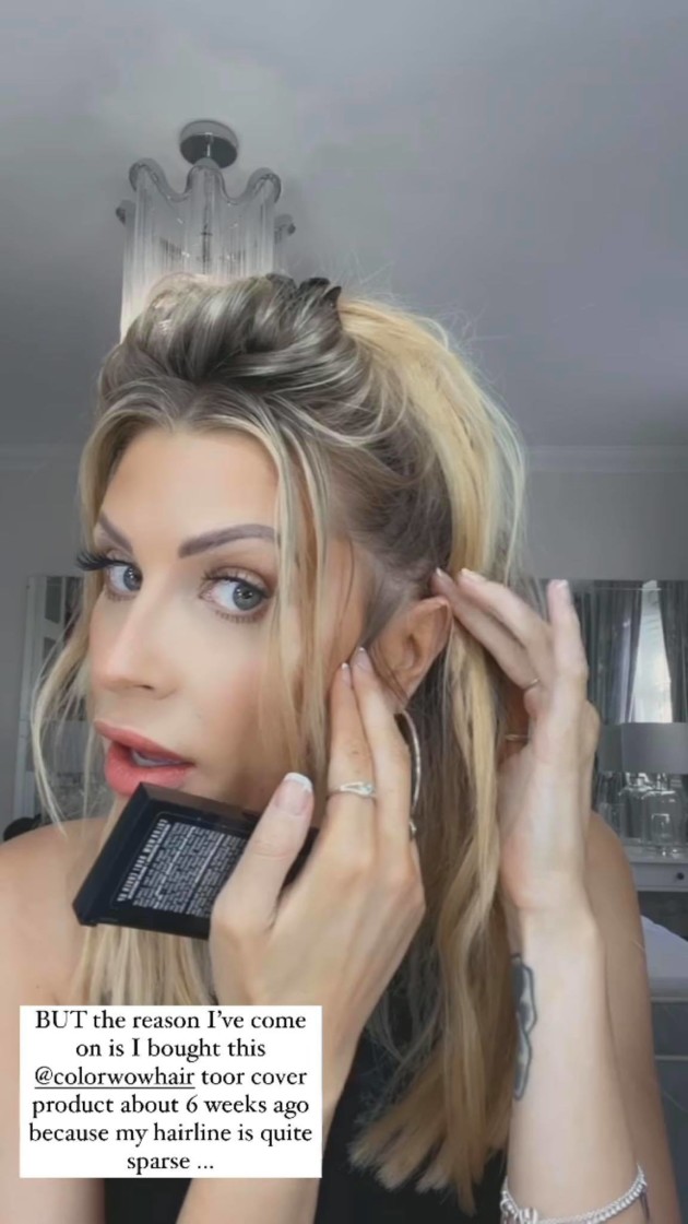 “But the reason I’ve come on is because I bought this, about six weeks ago now, colorwow, because my hairline is quite sparse. So when I put my hair up I’ve got these patches that I’m not too keen on, because then you can see my extensions,” Sophie confessed, showing us her sparse hairline.
