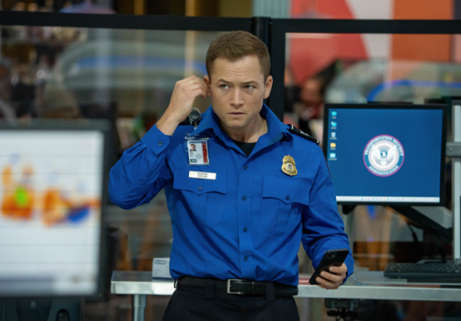 Carry-On is set on Christmas Eve and stars Rocketman actor Taron Egerton as Ethan, a young security worker at Los Angeles airport who is forced into a life-threatening situation when he is blackmailed by a mysterious, threatening caller.