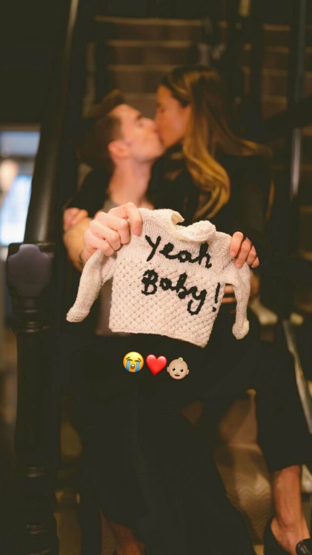 The couple announced the wonderful news this morning, sharing a beautiful montage video featuring clips from their wedding day, one year ago, alongside a lovely clip of themselves today, Emma-Lou’s small bump clearly in view.