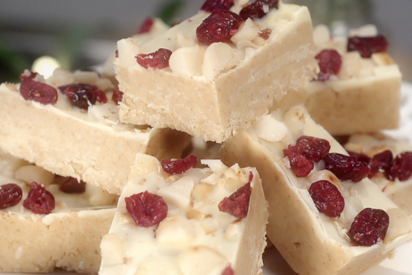 White Chocolate, Macadamia and Cranberry Biscuit Bars