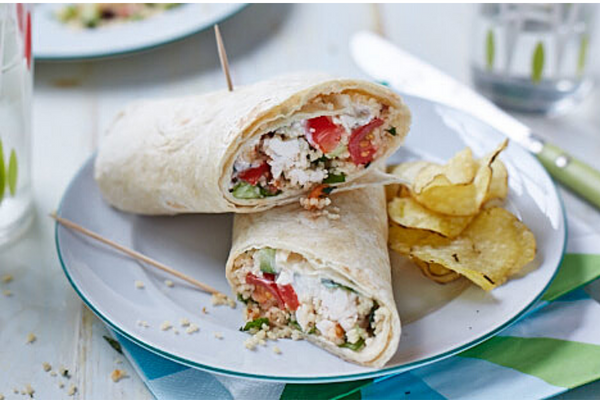 These deliciously easy wraps are a great way to use up leftover chicken. Wrap them up in tinfoil and make sure when reheating chicken that it’s piping hot.