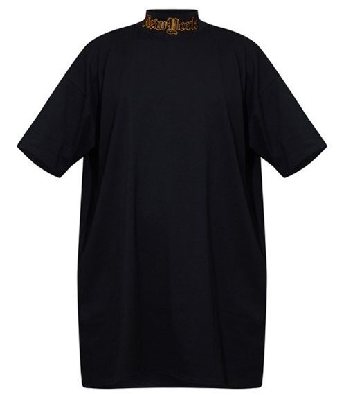 Black High Neck New York Embroidered T Shirt Dress RRP €28