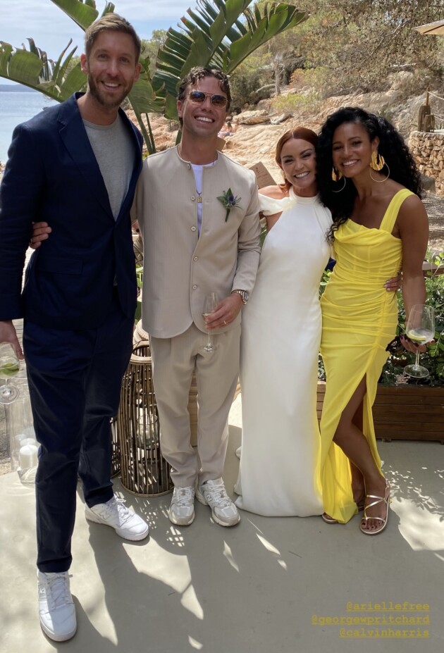 The couple’s Spanish wedding was attended by several big stars, including We Found Love hitmaker Calvin Harris and his wife, TV presenter Vick Hope.