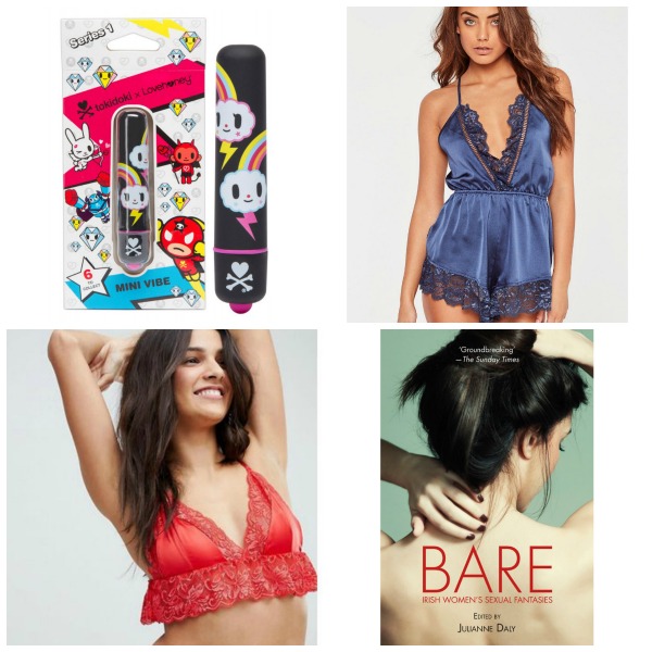 Sex Siopa Tokidoki Mini Vibrator €25.00, Lace trim teddy €36.00, Wolf & Whistle bra €29.73, Bare – Irish Women's Sexual Fantasies €9.99