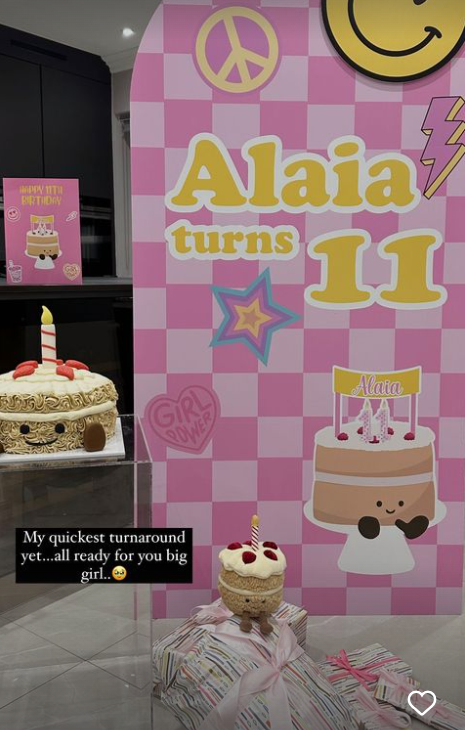 While admitting, “My quickest turnaround yet.. All ready for you big girl”, the TV presenter showcased a picture of a photowall, Alaia’s birthday cake and card, all of which were Jellycat-themed.