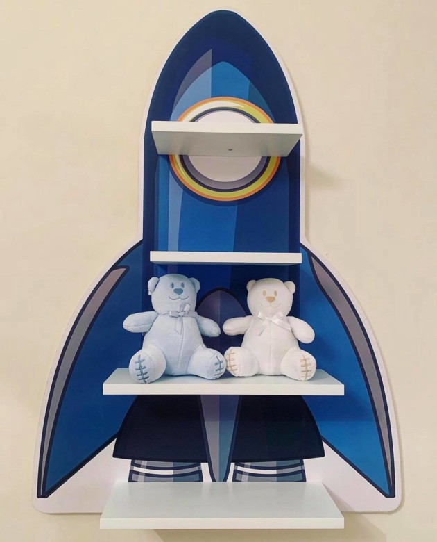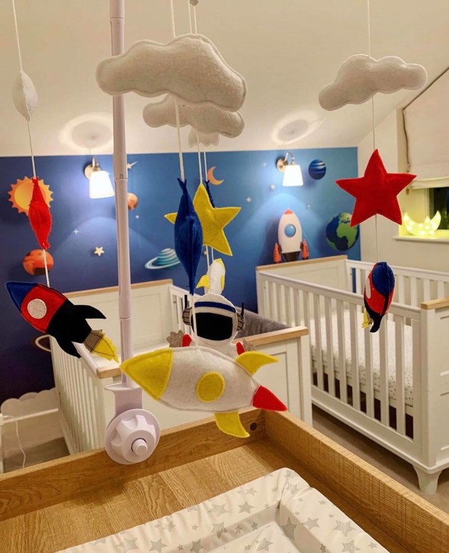 “The nursery for our twin boys is pretty much ready and we had a bit of fun with the outer space theme!” the 36-year-old mum wrote in the caption.