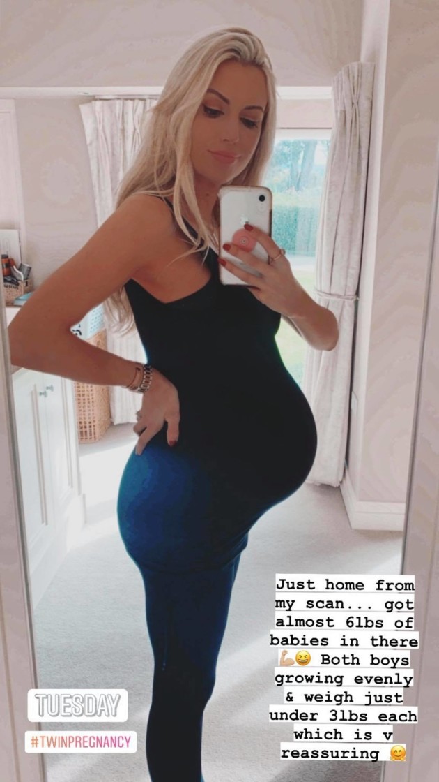 With her due date fast approaching, Rosanna also gave us an update from her latest scan on her Instagram Stories. "Just home from my scan… Got nearly 6lbs pf babies in there! Both boys are growing evenly and weigh just under 3lbs each which is v reassuring," Rosanna wrote.