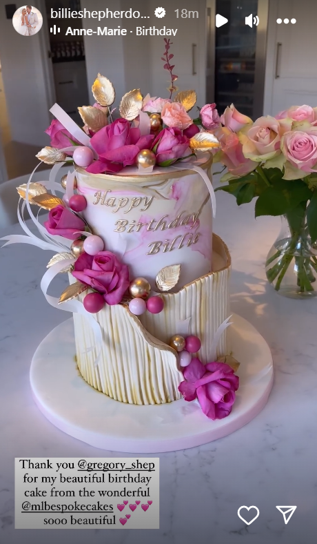 Billie also showcased the stunning birthday cake her husband Greg Shepherd got to celebrate her turning 34.