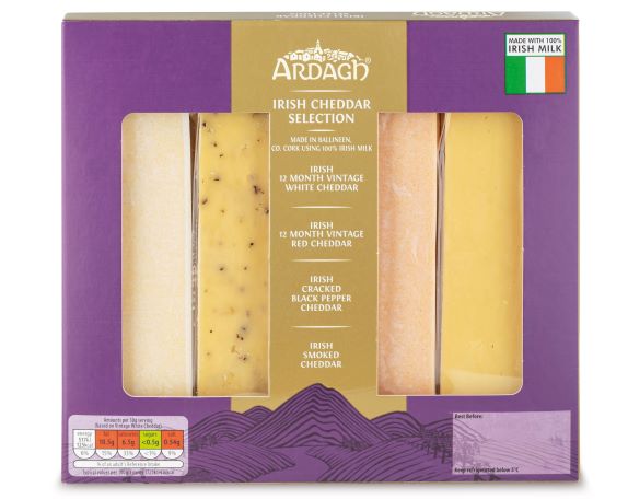 - Ardagh Irish Cheese Selection €4.99 (4 x 100g) Includes award-winning Irish Cheddar, Vintage White, Vintage Red, Irish Cracked Black Pepper and Irish Smoked.