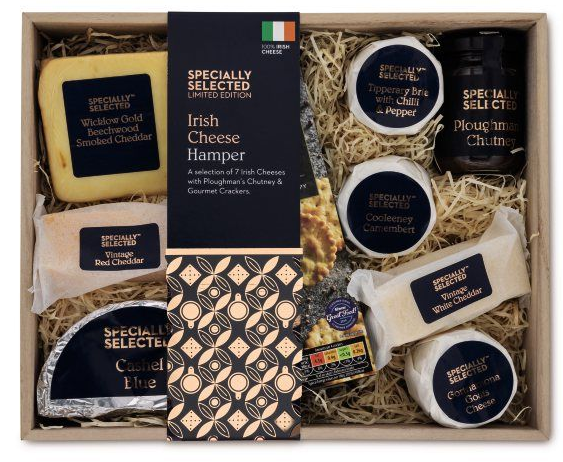 - Specially Selected Irish Cheese Hamper €15.99 (1.025kg) A selection of 7 Irish cheeses with ploughman’s chutney and gourmet crackers for the perfect Christmas cheeseboard.