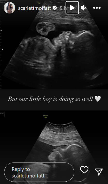 Moffatt also posted a photo of her baby’s scan and wrote, “But our little boy is doing so well”, alongside it.
