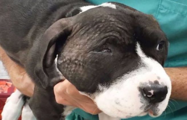After being attacked by another dog, four-month-old puppy, Loca, suffered extensive damage and multiple puncture wounds to her face and neck.