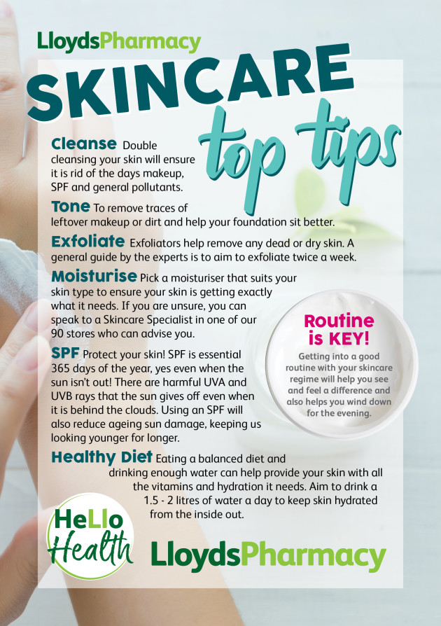 LloydsPharmacy skincare experts are on hand to help you create the perfect routine to suit your skin type and needs. Along with selecting the routine for your skin, there are some simple steps you can take to protect it. LloydsPharmacy Pharmacist Rebecca Barry has created a list of her top tips below, which will get your skin glowing in no time.