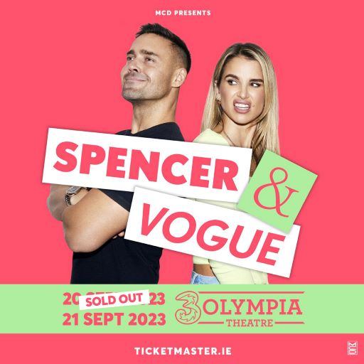 Welcome to Spencer & Vogue Live! Spencer Matthews and Vogue Williams bring their hit podcast live to the stage at Dublin’s 3Olympia Theatre on September 20th and 21st 2023. Tickets priced from €39.90 are on sale now from Ticketmaster.