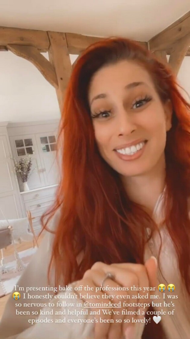 Sharing the exciting news this afternoon on her Instagram Stories, Stacey said, “The reason why I’ve been going off and filming every few weeks is because I’m going to be presenting Bake Off: The Professionals this year!”