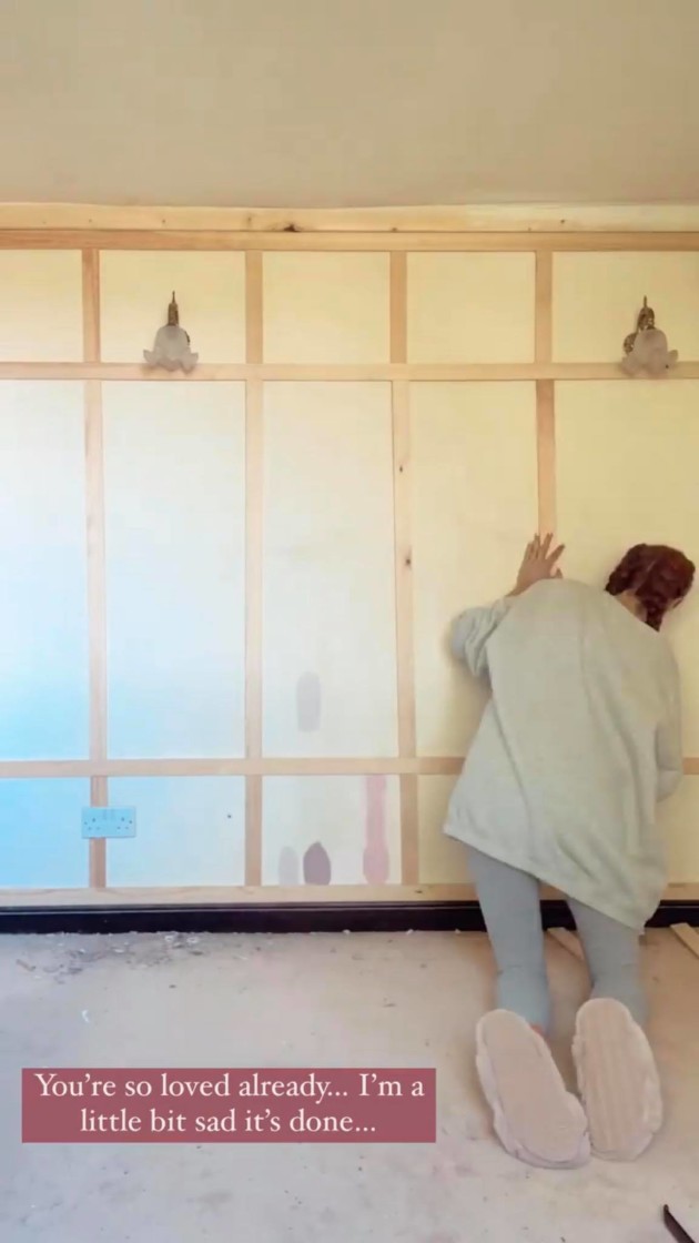 “I can not wait to hold you, cuddle you, sing to you, feed you and put you to bed in here. I’m so proud of everything in here and it’s been the best feeling making it and I’ll miss being covered in pink paint.”