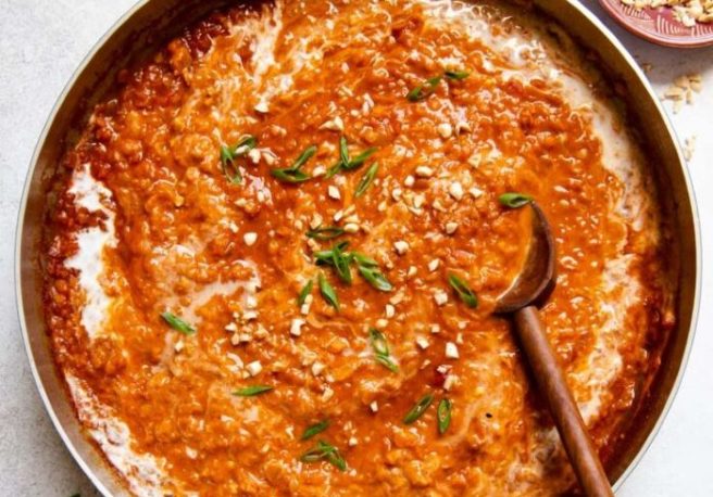 It’s meal prep Sunday! And this week I have got a seriously yummy batch-cook meal to see you through the start of the week. No more lunchtimes wasted trying to figure out what to eat – this red lentil vegetarian dal will keep you going throughout the day and boost your afternoon withal its nutrients!